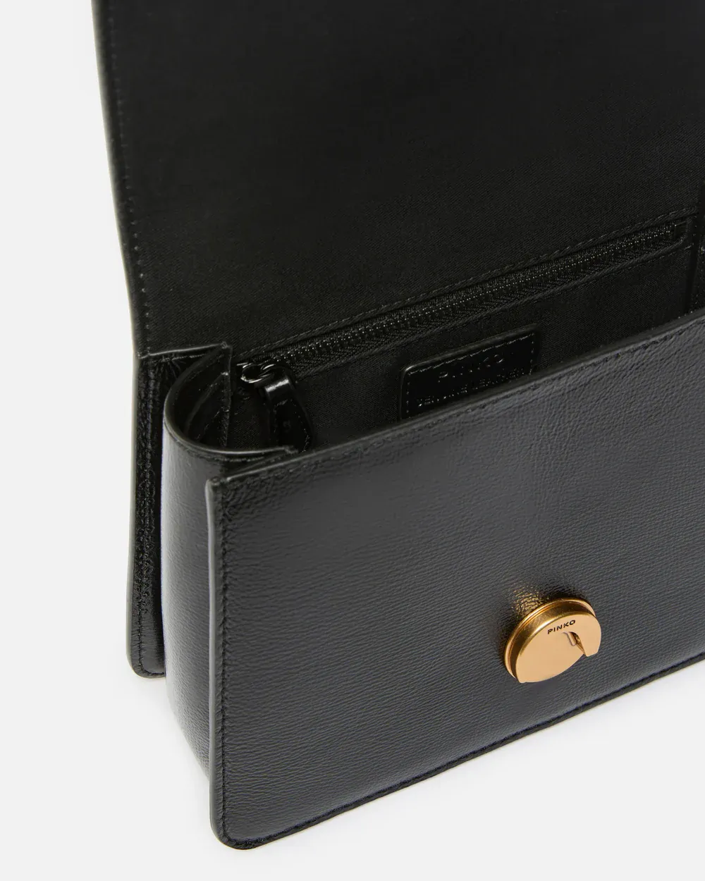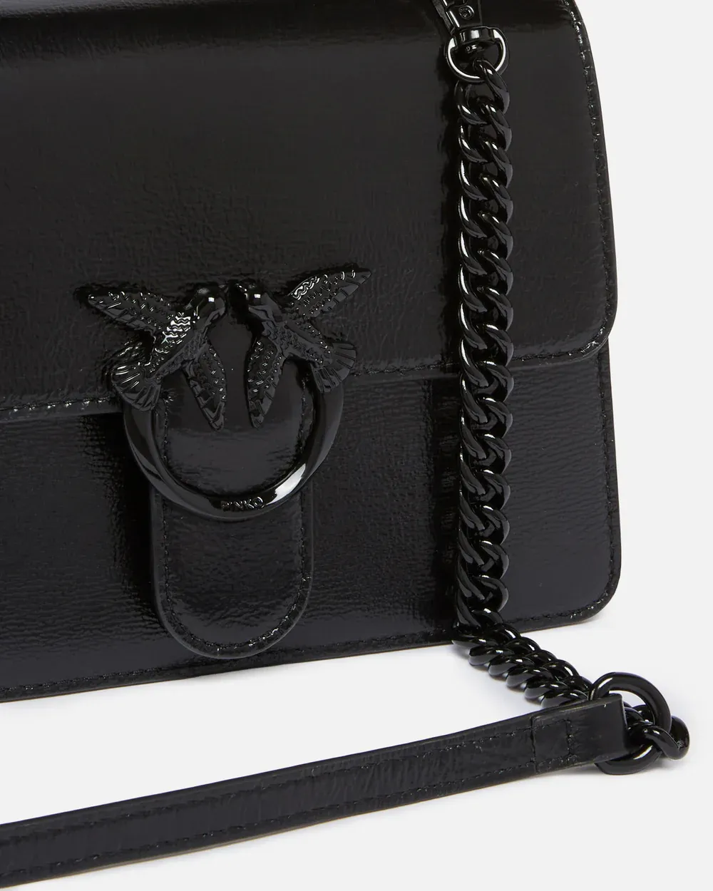 Mini Love Bag One Top Handle Light small handheld bag in soft shiny leather with a vintage effect, with a distinctive deconstructed trapezium shape. Featuring an elegant monochrome look that extends to the metal hardware, the style includes a fixed top handle and a removable leather and chain shoulder strap, allowing it to be carried in three ways: by hand, over the shoulder, or crossbody. The magnetic button fastening is complemented by the iconic Love Birds Diamond Cut buckle and reveals a cotton drill-lined interior, featuring a slip pocket with logo label and zip. Activate your PINKO bag: verify the authenticity of your product and access a personalised experience by scanning the Love Birds embroidery on the back of the bag with your smartphone! - LOVE ONE TOP HANDLE MINI