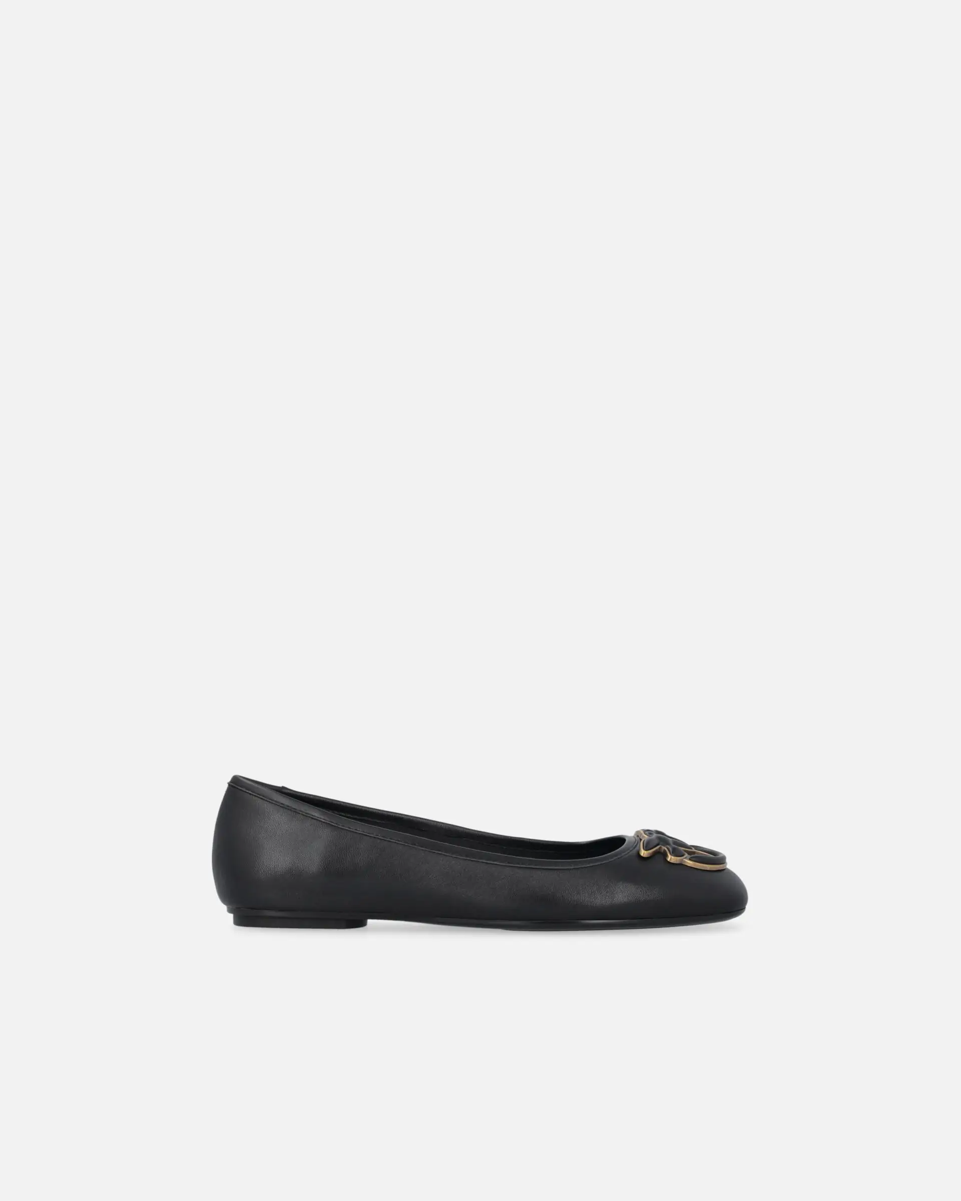 Square-toe pumps in soft nappa leather with 1 cm-high heel. This minimalist style is embellished with the iconic raised Love Birds logo on the toe, accentuated by a refined gold-coloured metal trim. These practical ballerinas are destined to become a go-to pair for your casual looks and beyond, don't you think?
