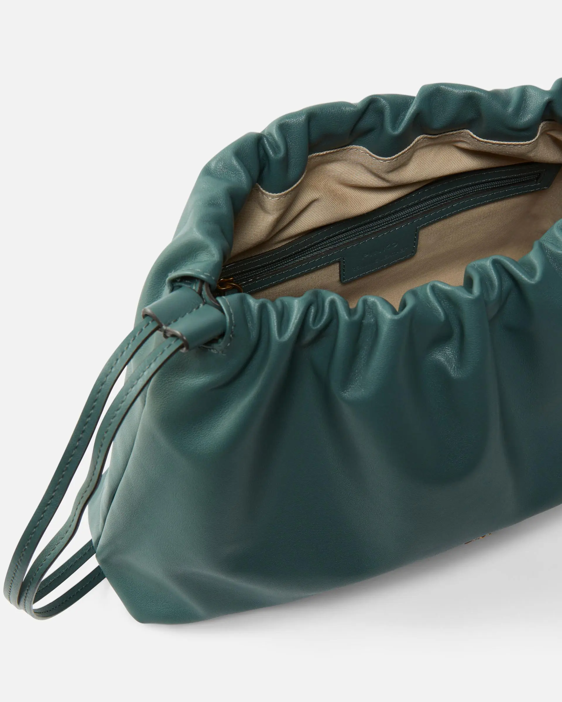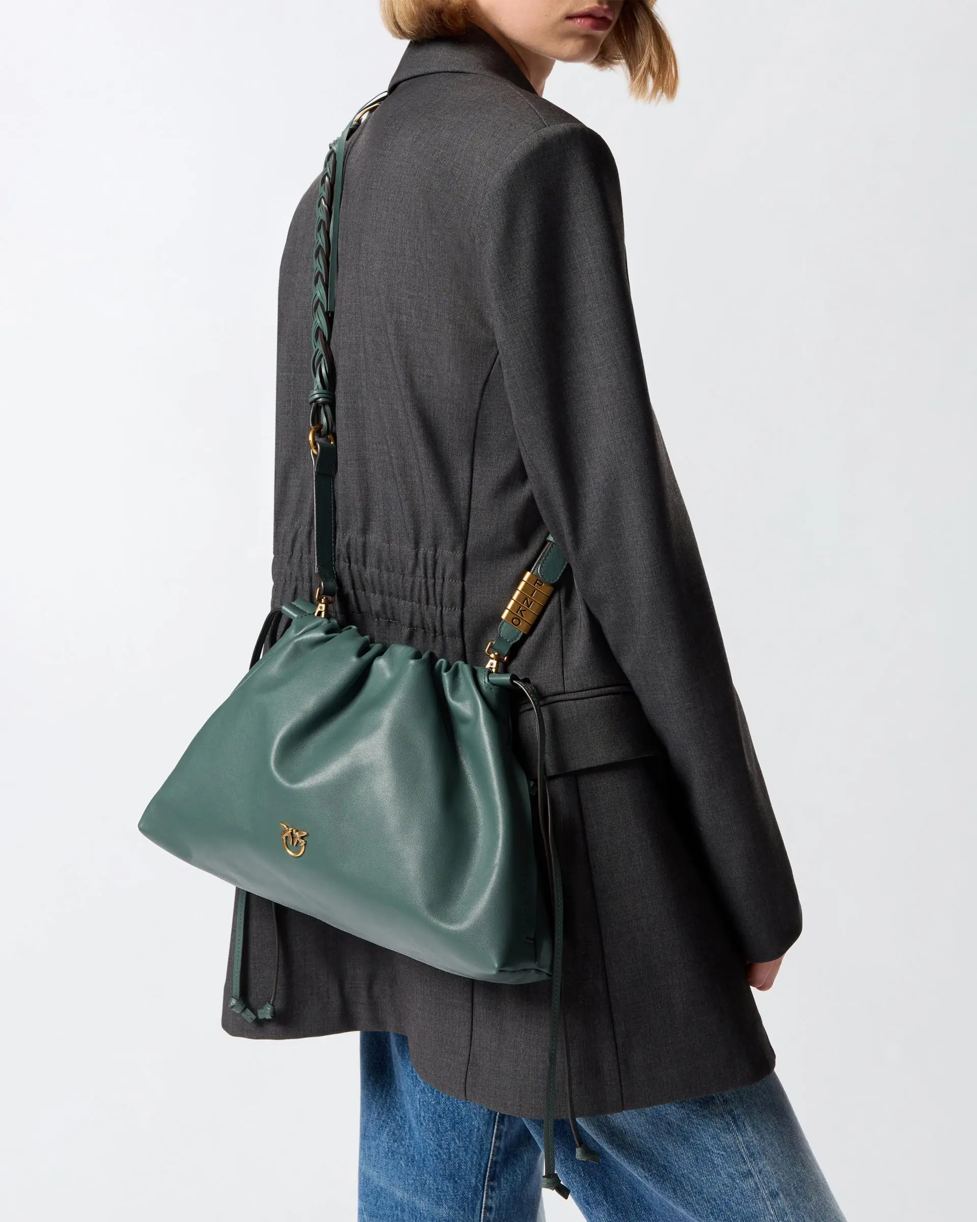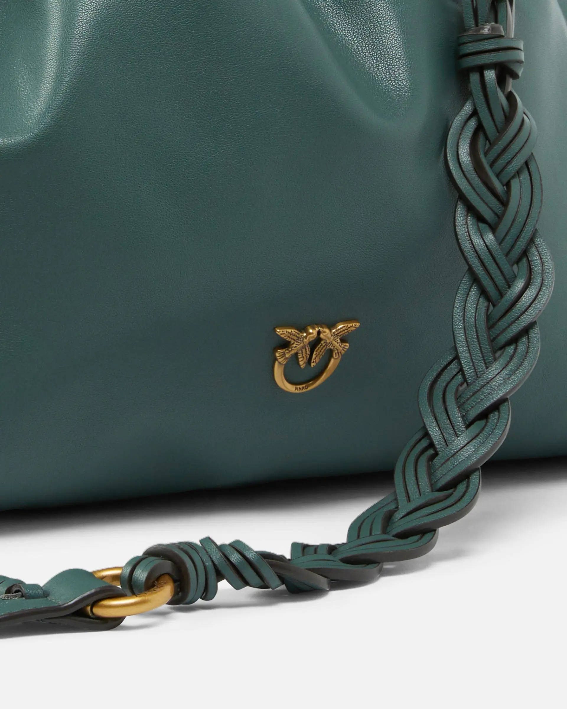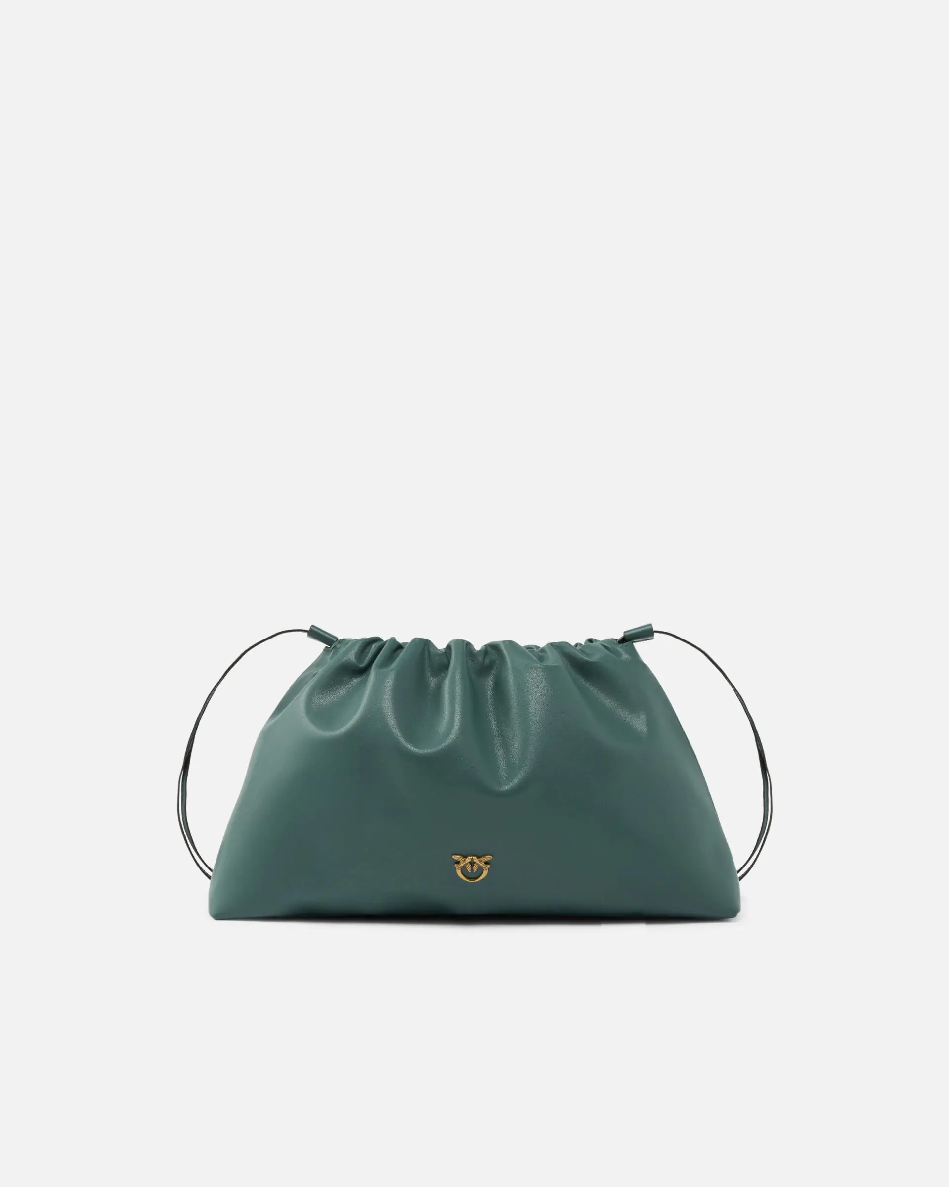 Large clutch bag in soft leather with elongated, deconstructed shape and drawstring closure. This piece features two adjustable leather shoulder straps—one of which is woven to striking effect—suitable for shoulder or hand carry, depending on your needs. The accessory features a cotton drill-lined interior and a zipped slip pocket. The finishing touch is provided by the Love Birds logo plaque symbolising the brand's singular style. Activate your PINKO bag: verify the authenticity of your product and access a personalised experience by scanning the Love Birds embroidery on the back of the bag with your smartphone!