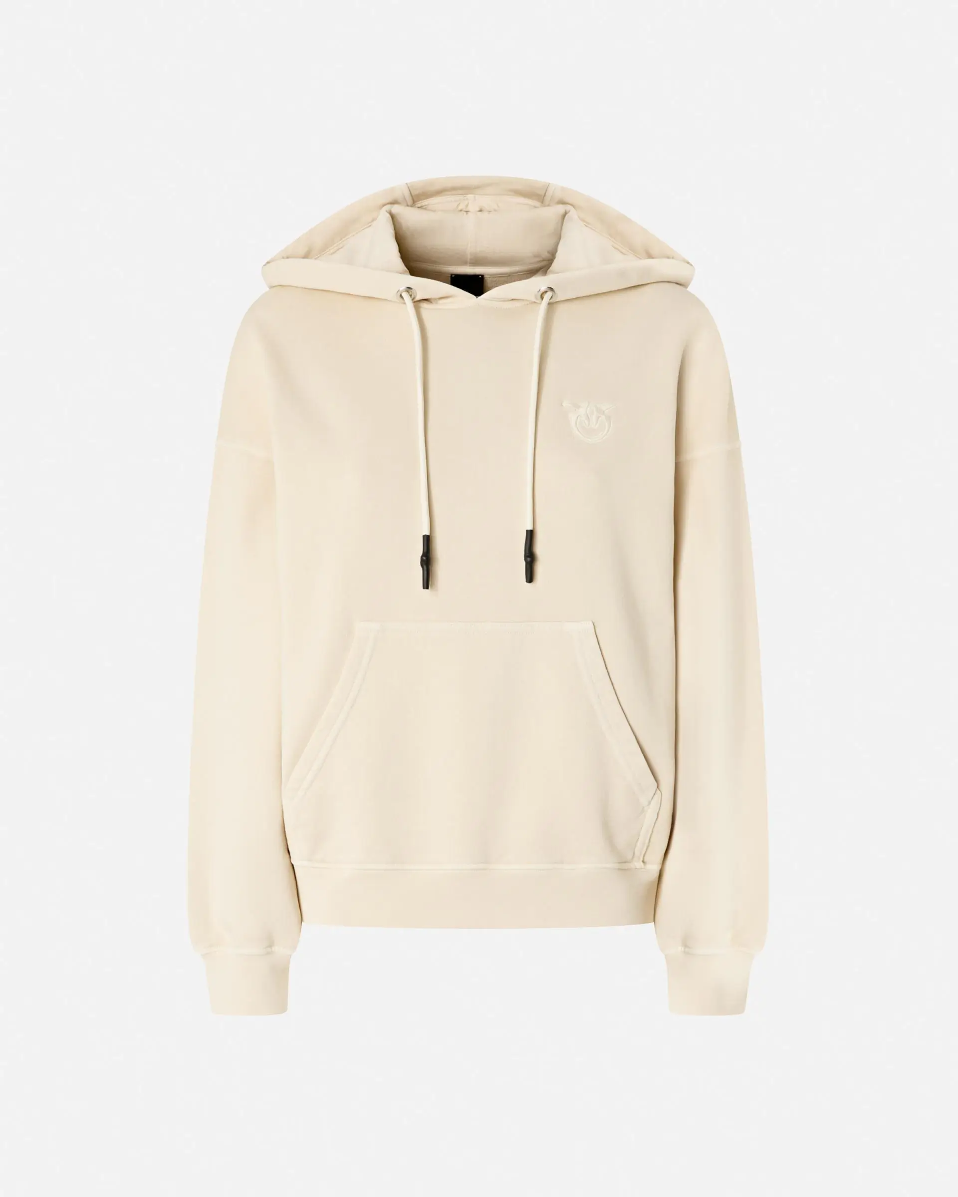 Relaxed-fit sweatshirt in aged-effect dyed cotton fabric. The embroidered Love Birds logo on the front left side adds pure PINKO style to the piece. Hood with drawstring, long low set-in sleeves and pouch pocket at the front. Pair with the trousers in the same fabric for a comfy, original head-to-toe look during your leisure time.