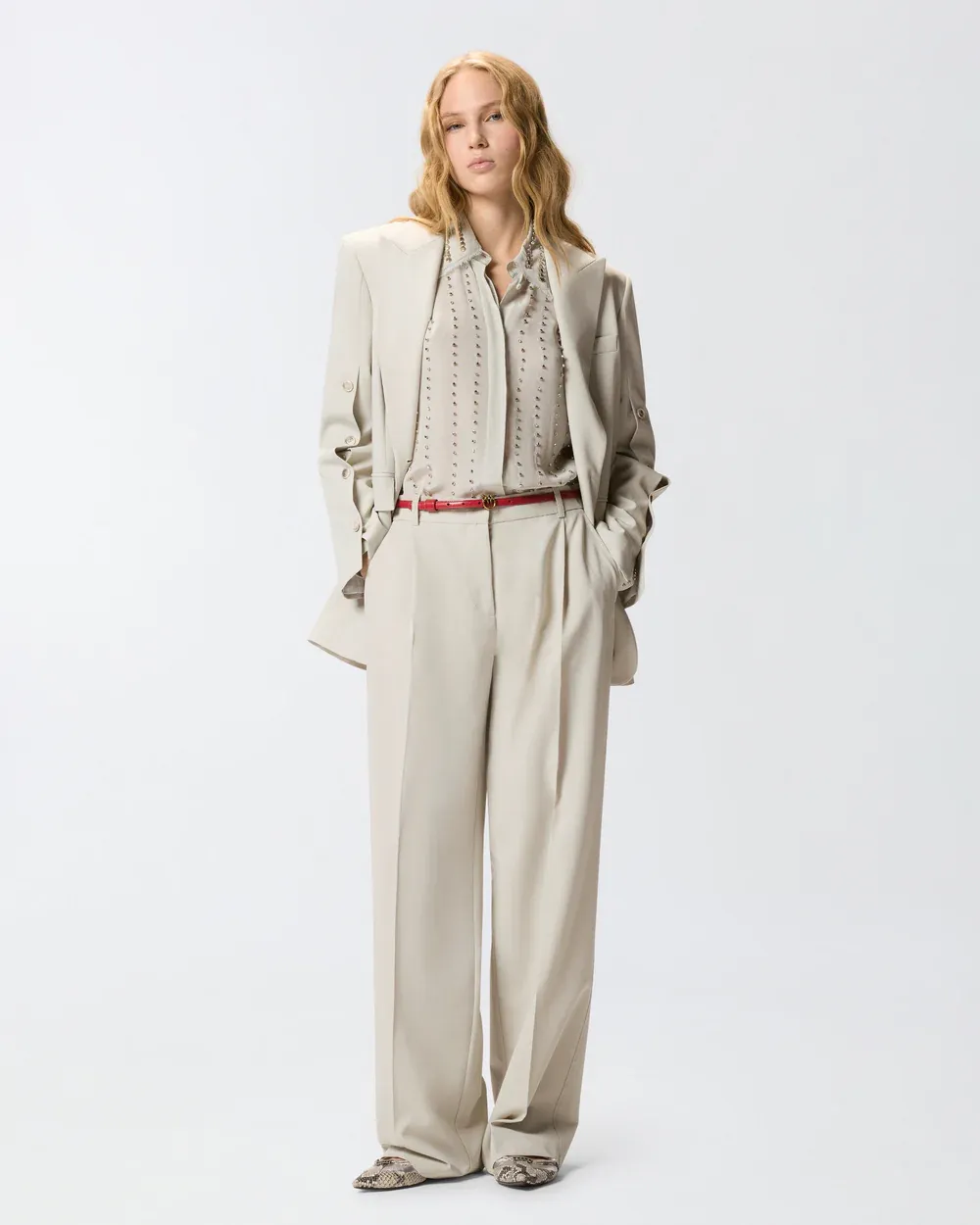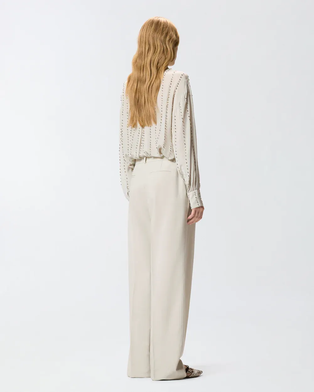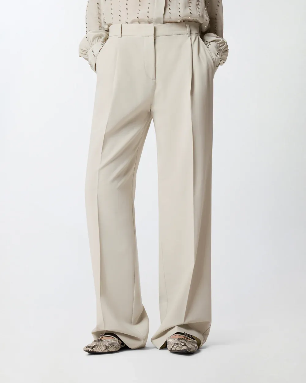 Straight-leg trousers in stretch viscose-blend fabric with a flowing feel. This garment is distinguished by refined pressed pleats down the leg and two welt pockets at the back, and is complete with a concealed zip and hook fastening. Pair these trousers with the matching jacket for an elegant head-to-toe look, or wear them with a more casual top for a mismatched outfit. - PAULA TROUSERS