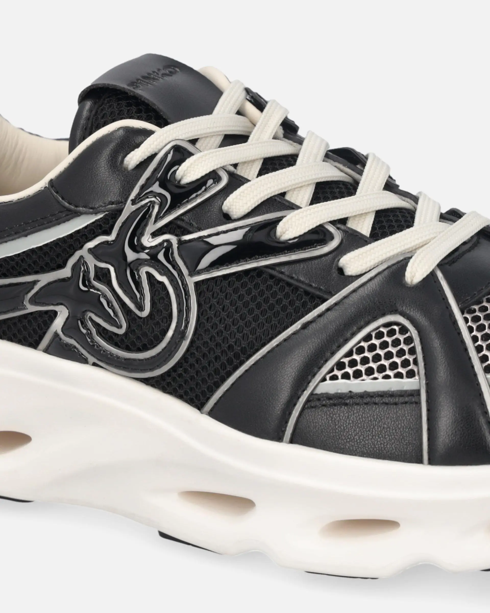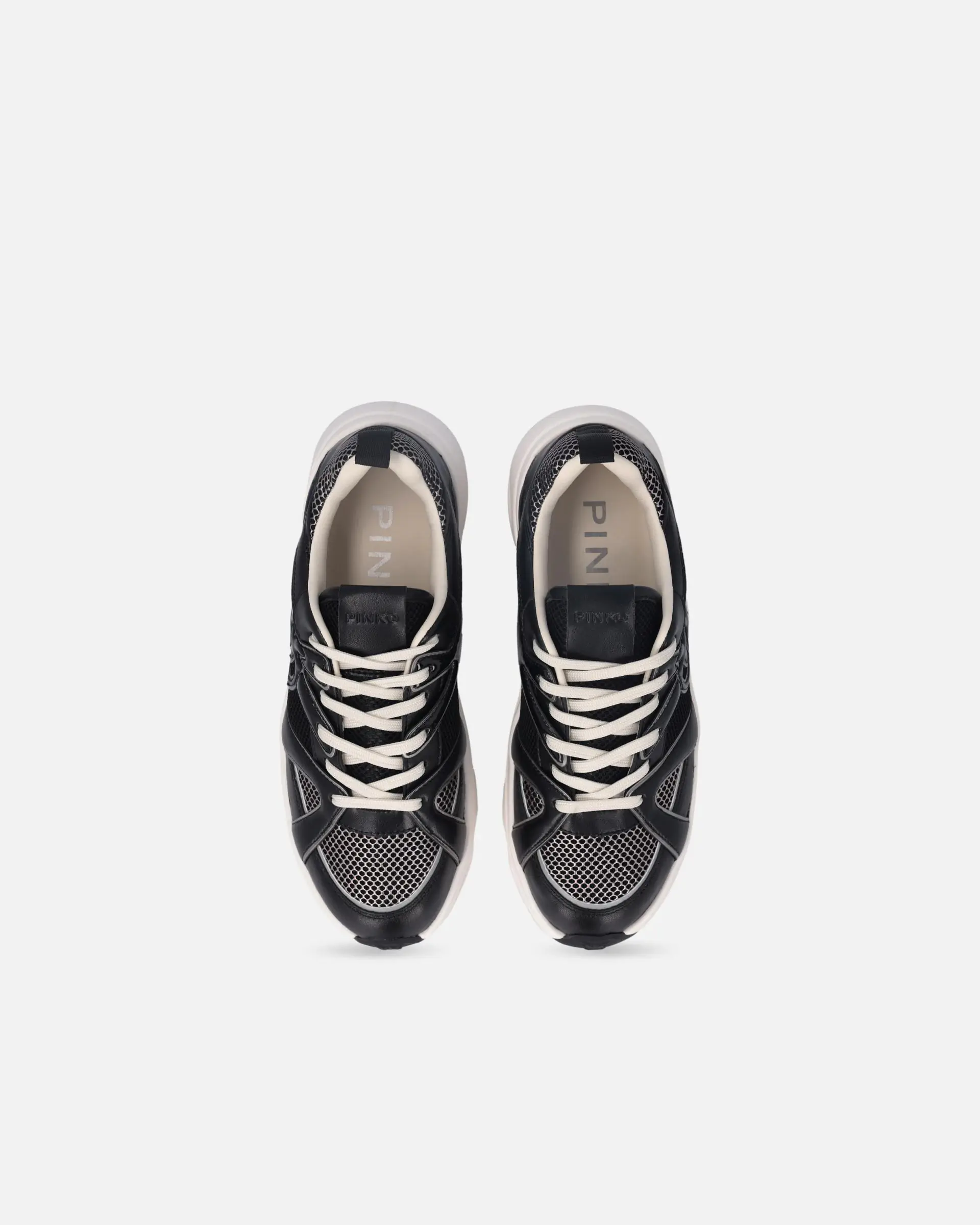 Sporty shoes with laces and pull tab on the heel for ease of wear. The upper, made from a variety of materials, is dotted with inserts that enhance the model with the elegance that has always set the brand apart. The PINKO logo lettering adorns the tongue and insole, while a raised Love Birds logo appears on the sides of the sneakers. The 5.5 cm-high perforated platform sole features an additional rubber appliqué on the bottom, dotted with an all-over Love Birds logo motif. This pair is destined to become a go-to for your casual daytime looks, don't you think?