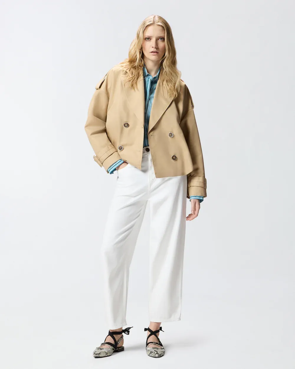 The trench coat, the spring garment par excellence, is revamped by PINKO with an even more versatile short design. This garment, made of cotton-blend gabardine, features wide lapels, dropped shoulders with epaulets, two convenient side pockets, cuffs with straps and a double-breasted fastening. The design is complete with an elegant cape-style insert at the back that adds volume. This authentic go-to is ready to follow you from the office to evening occasions. - TRISCIA TRENCH COAT
