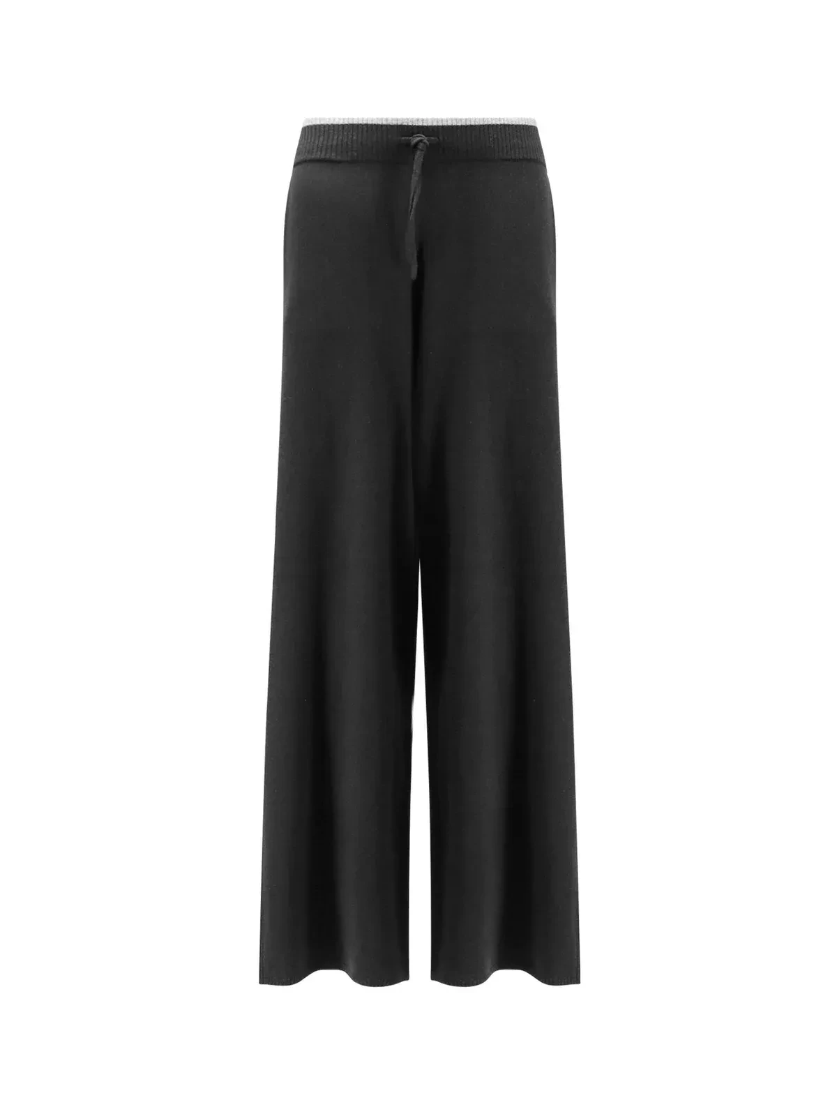 PINKO wool and cashmere trousers featuring a sporty cut, elastic and ribbed waist with ties, back pocket with brand lettering, straight legs.