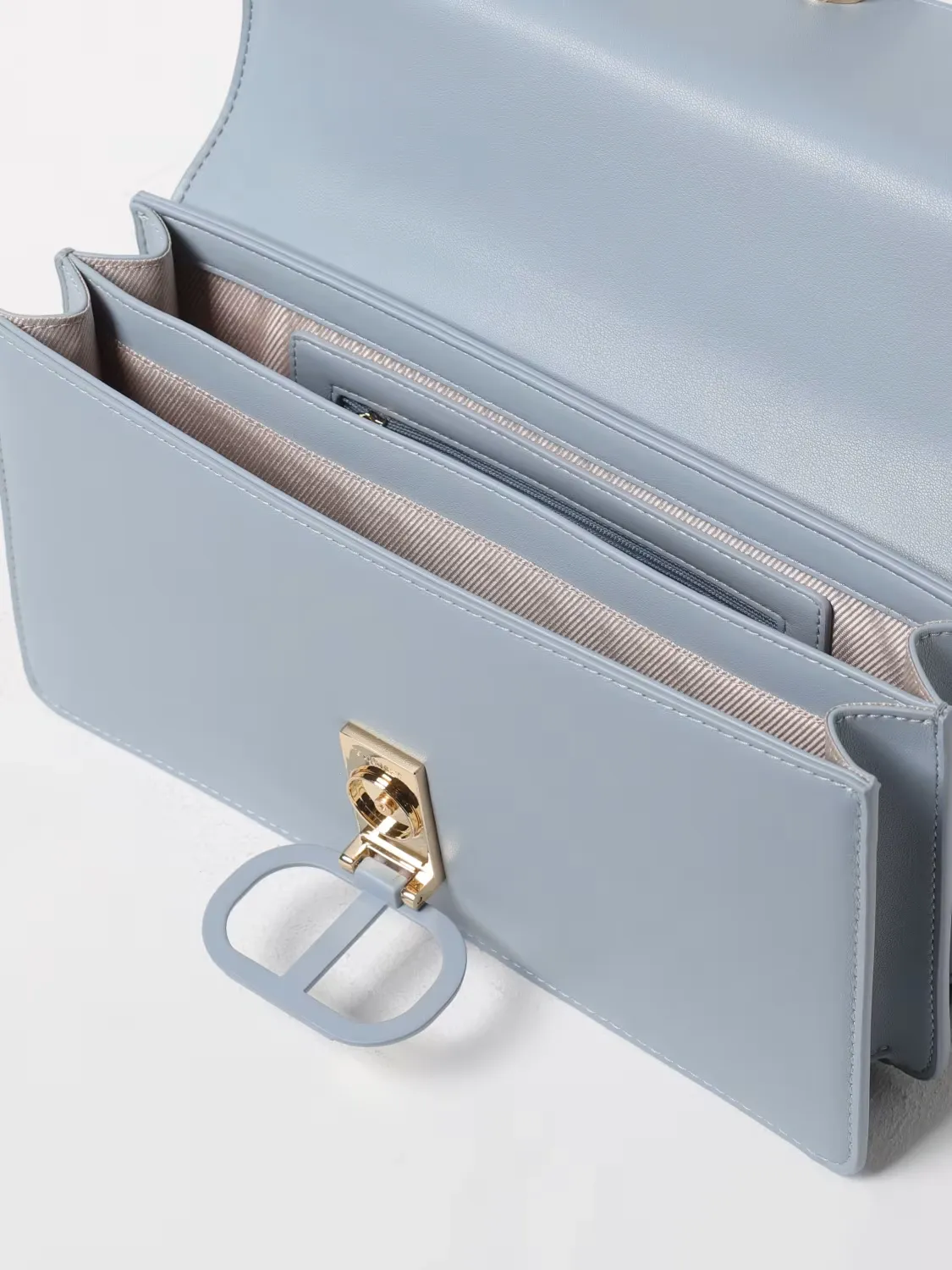 ‘Brera’ rectangular shoulder bag made from smooth faux calf nappa leather with flap and matching varnished Oval T fastener. Embossed edge flap, shoulder strap with double adjuster for on-shoulder and cross-body wear, lining.