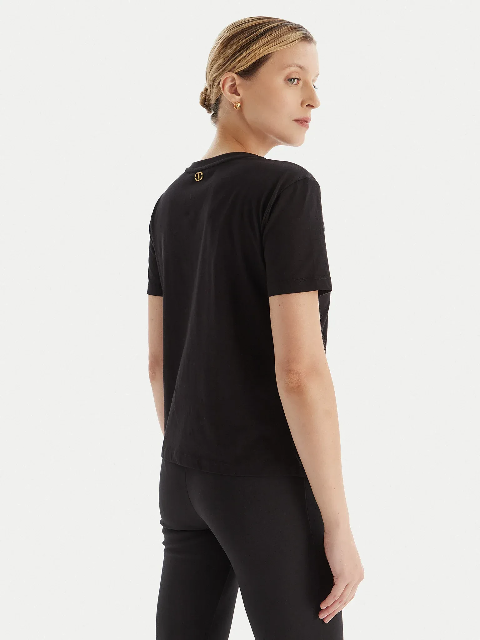 An essential and refined piece that combines simplicity and femininity in perfect balance. The T-shirt Twinset in soft cotton jersey is a statement of everyday style with an iconic detail: the bow print on the front, symbol of the brand's grace and discreet elegance.
