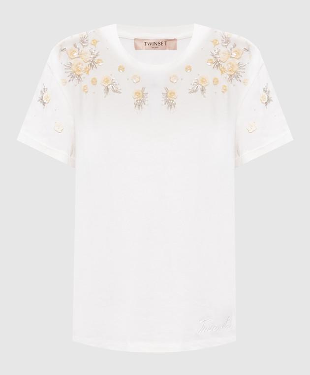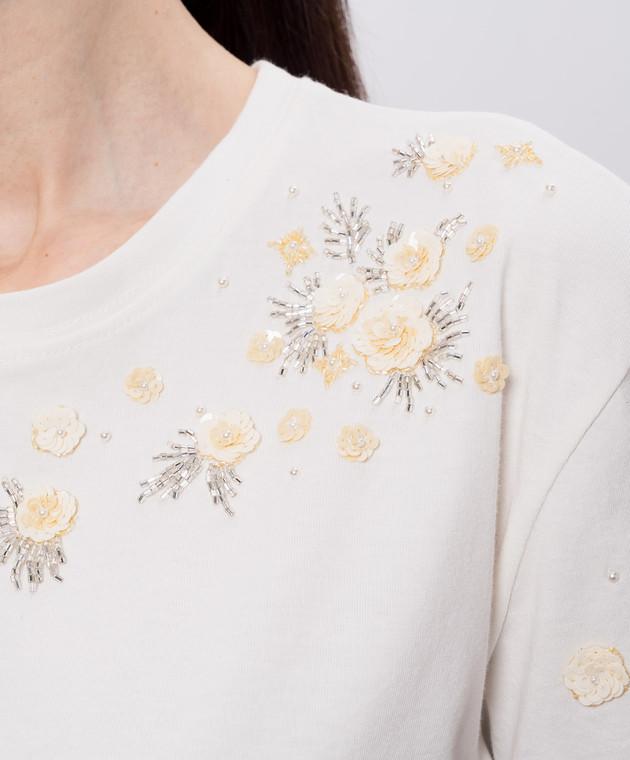 Decor: Floral appliqué in sequins, pearls and seed beads, reverse, logo embroidery