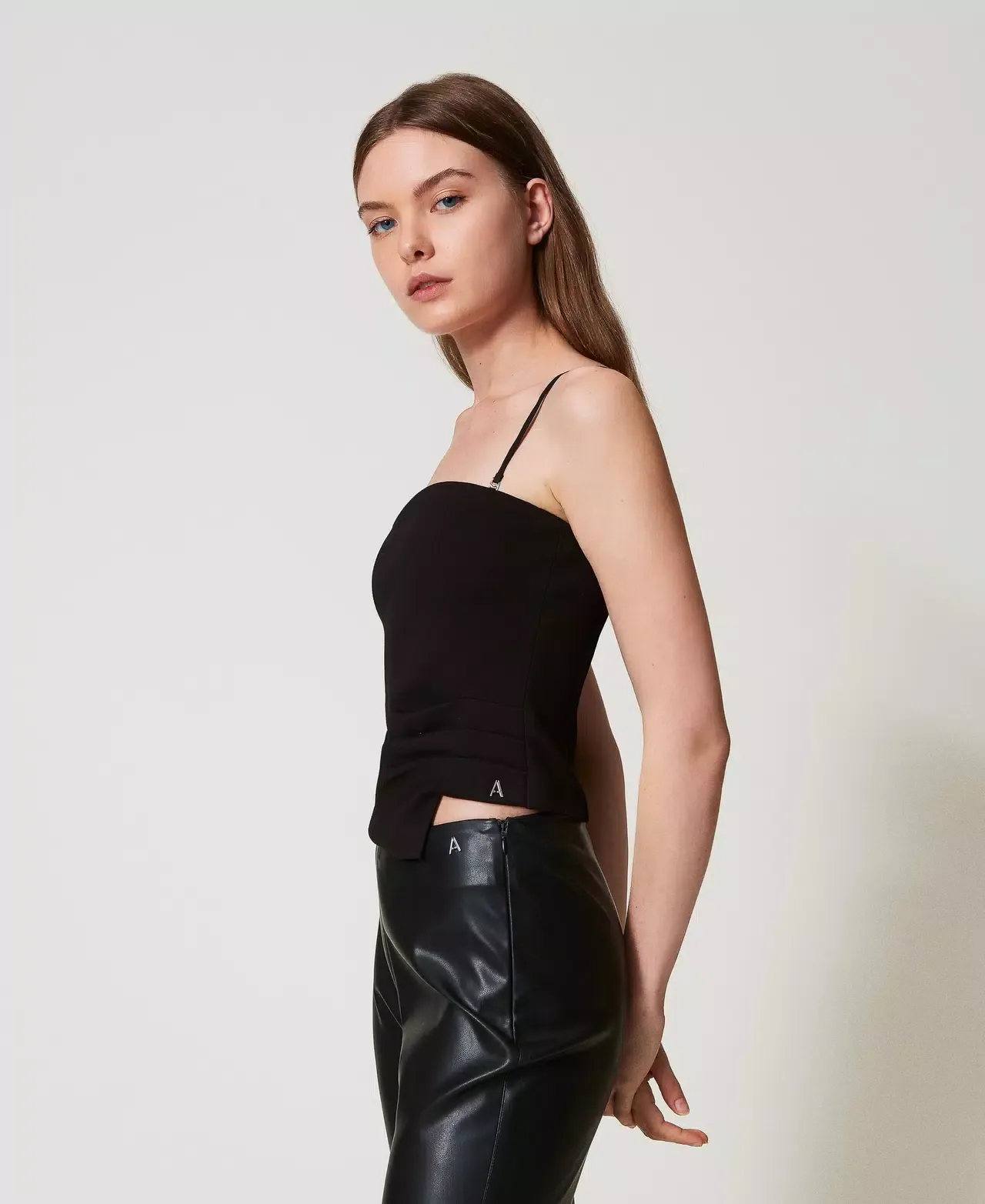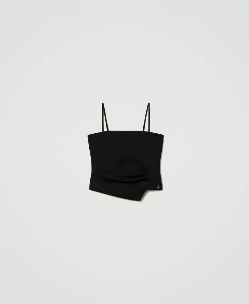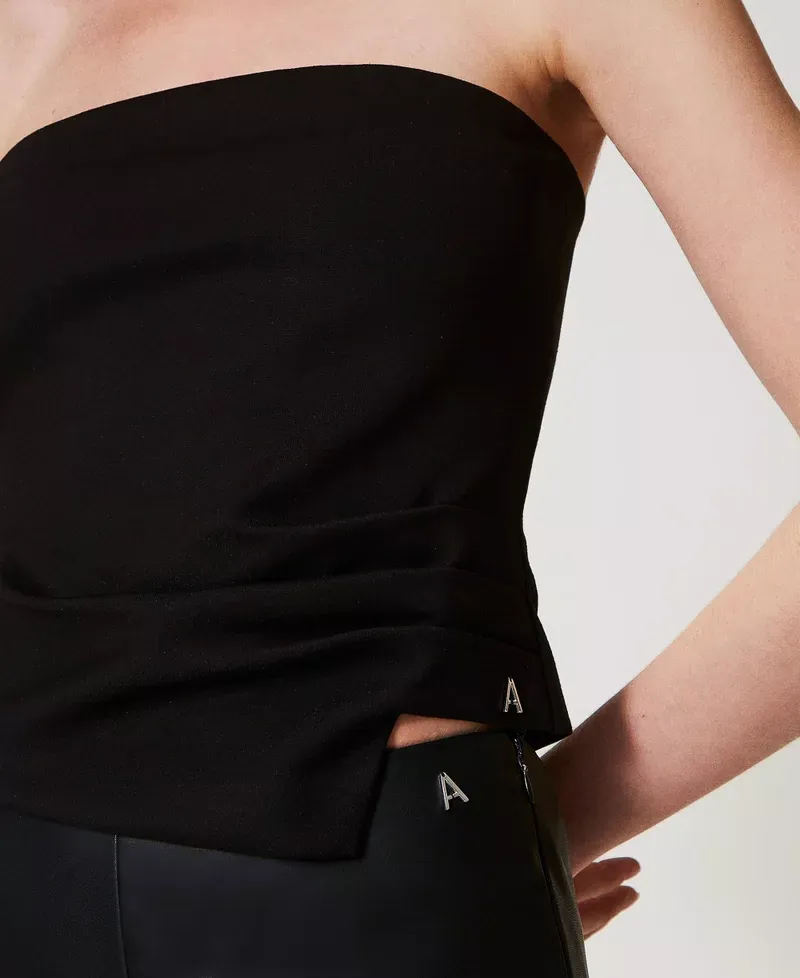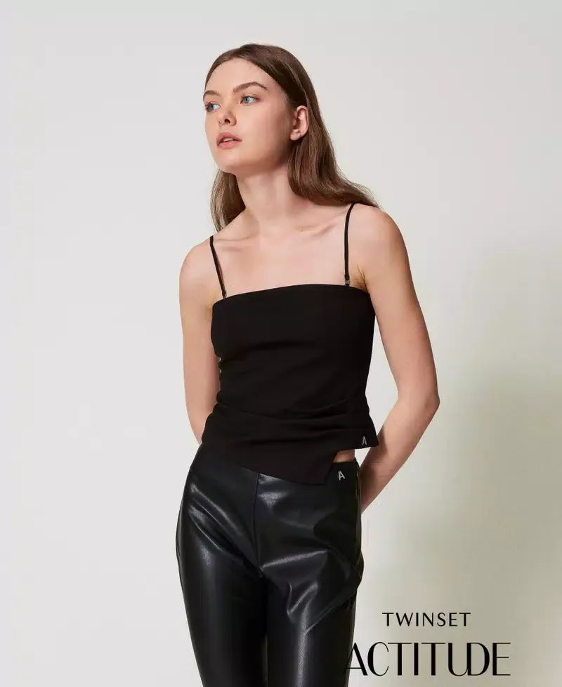 Actitude collection Milano stitch top with removable shoulder straps, asymmetrical draping on the side, metal zip fastening on the back, fitted.