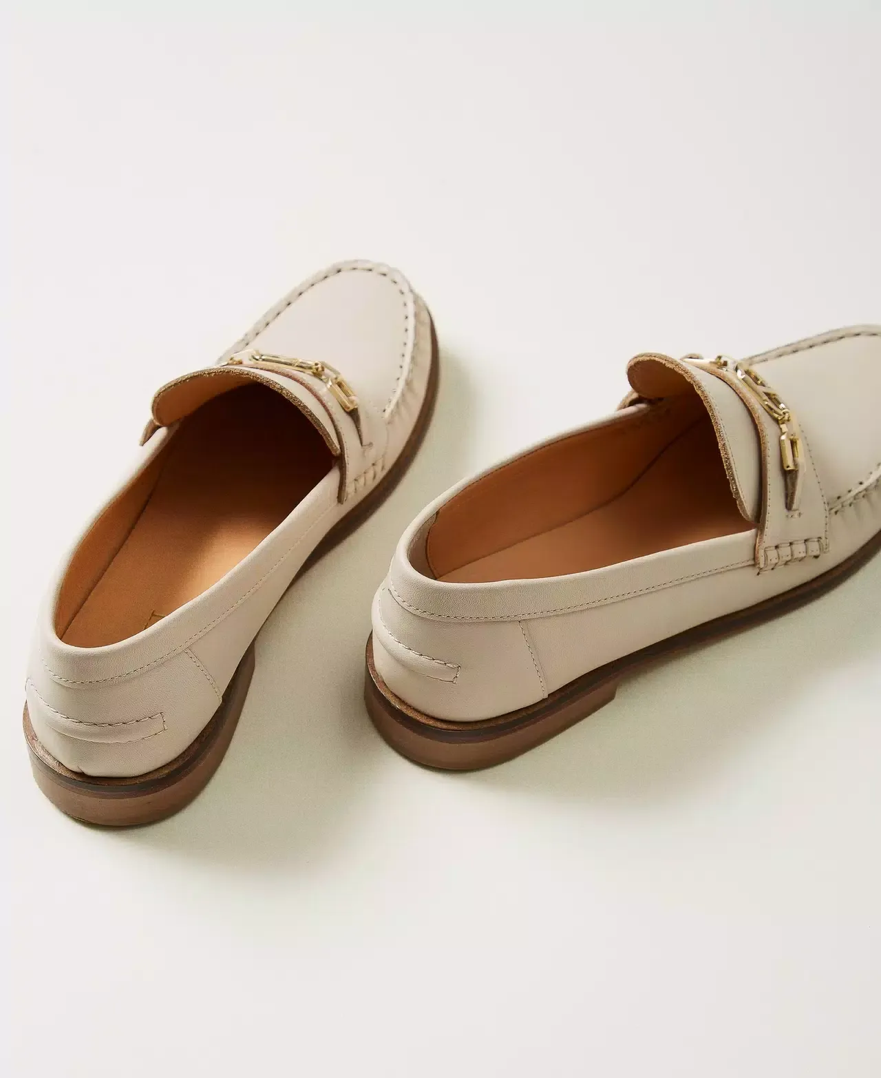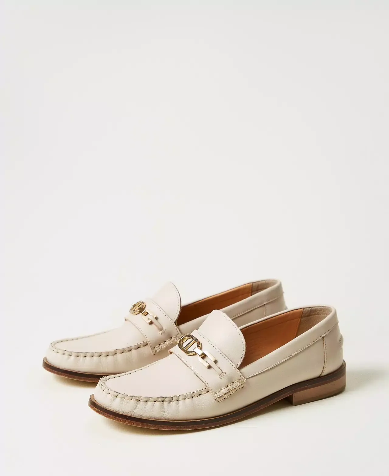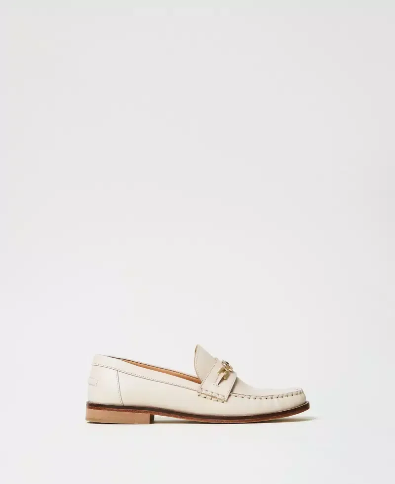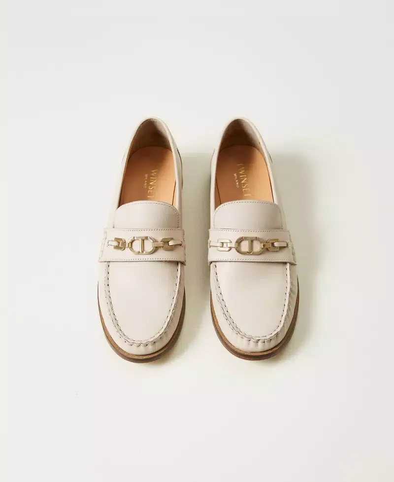 Leather loafers with metal Oval T clasp and leather sole.