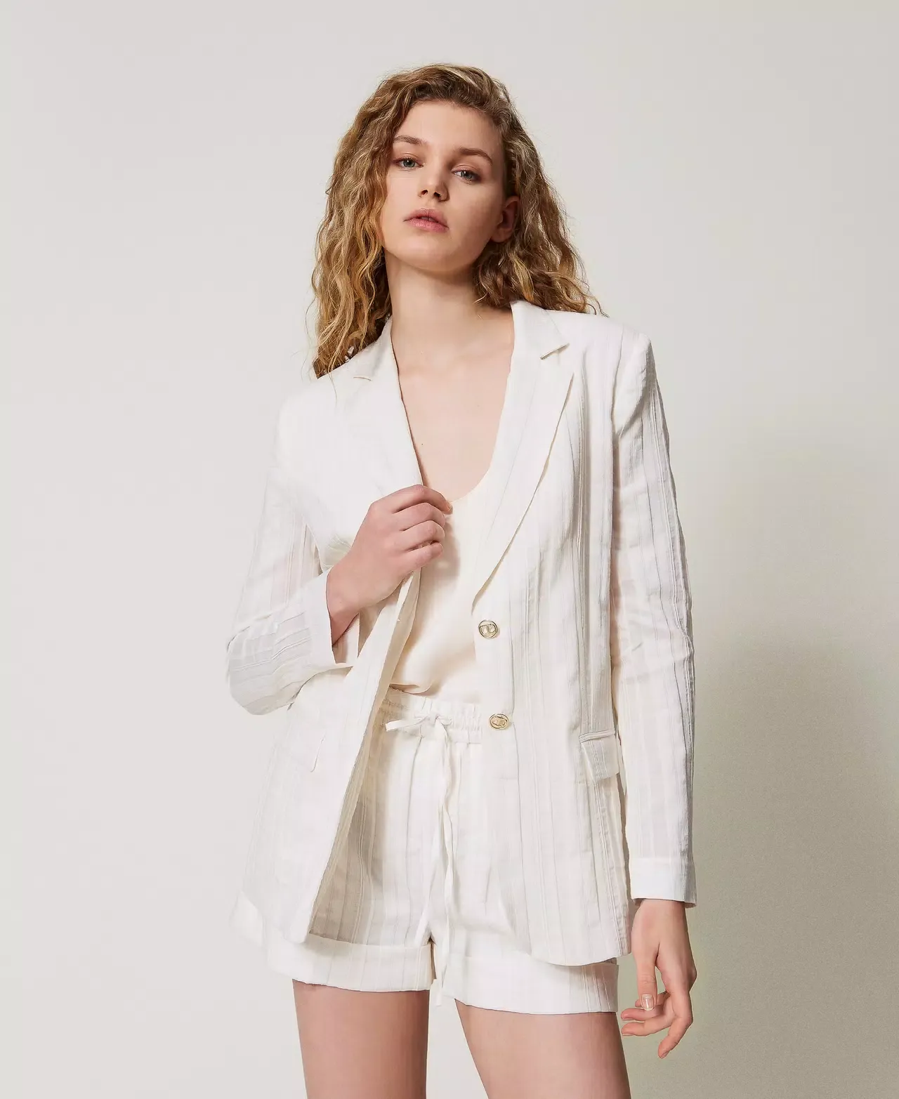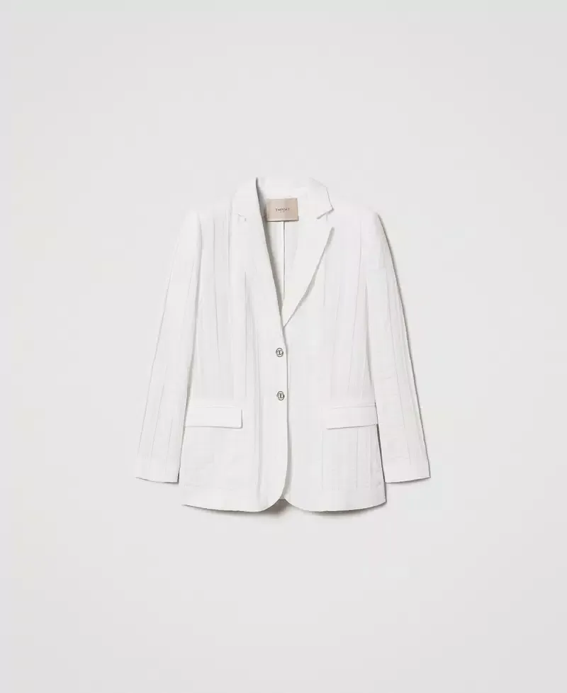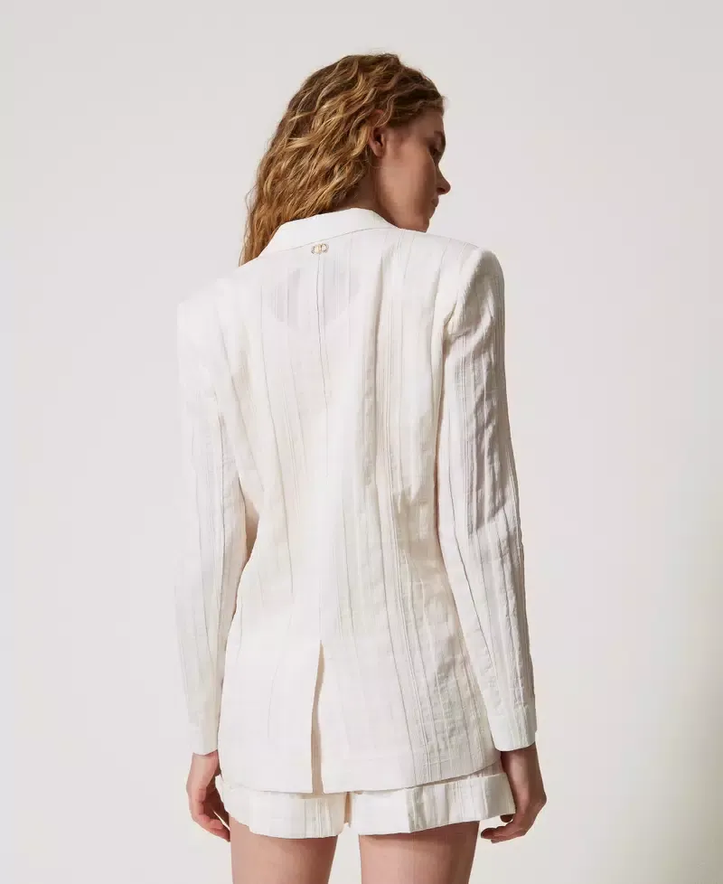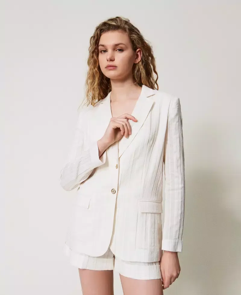 Blazer in a striped cotton-linen blend with metal Oval T logoed buttons. Featuring lapels, single-breasted fastening, long sleeves, flap pockets, cotton lining, logo tab on the back and a fitted shape.