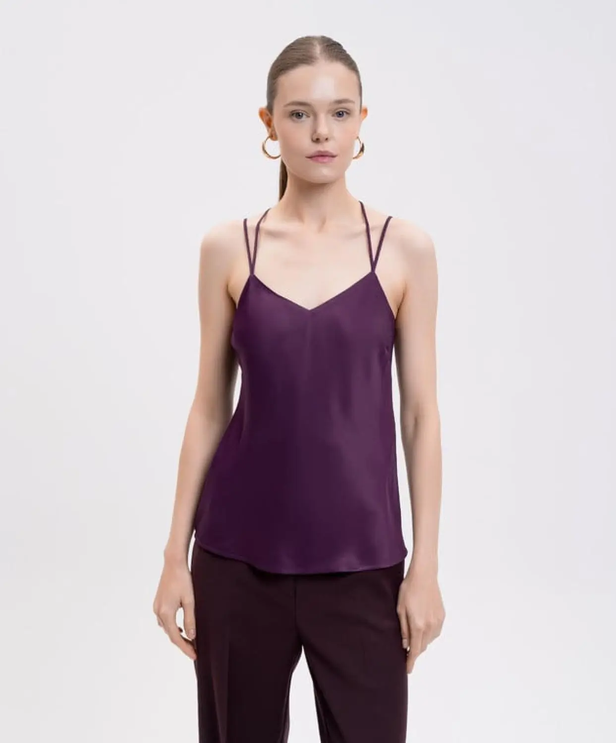TWINSET viscose top. Features thin, double straps, crossed at the back, V-neck, oval T logo on the back, straight and loose fit.