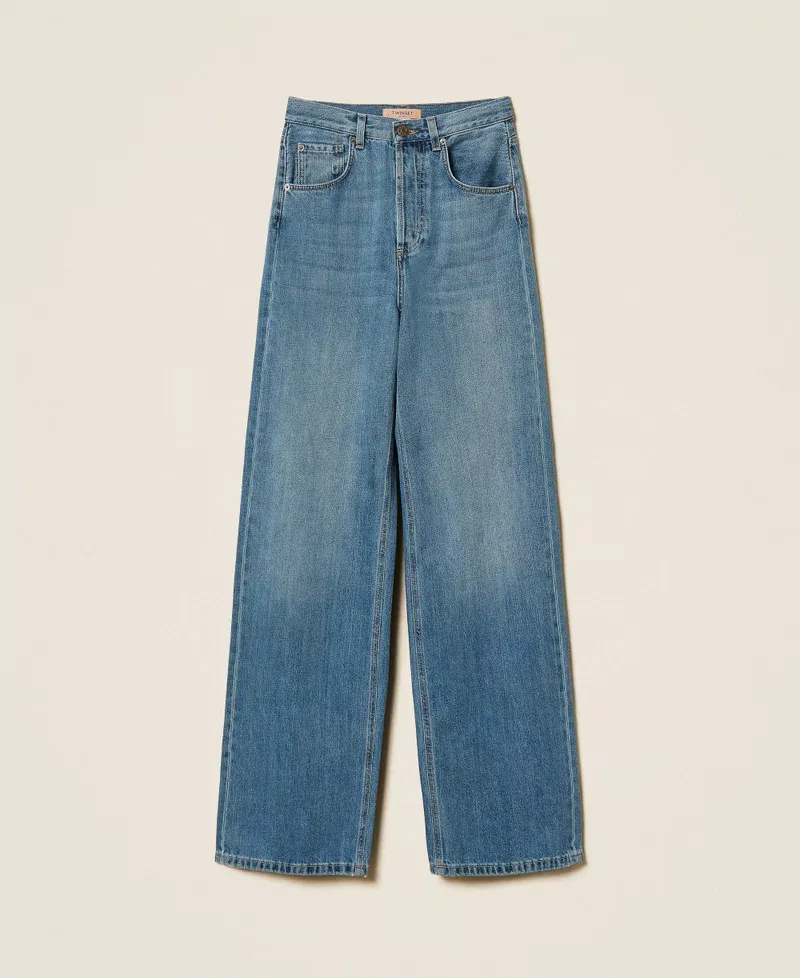 Stone washed cotton jeans, belt loops, zip and button fastening, five pockets, straight fit.