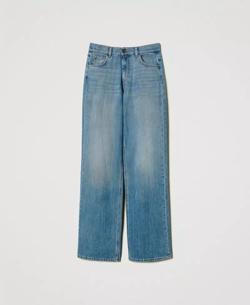 Jeans made in Italy from light stone wash cotton with light localised discolourations. Regular waist, belt loops, zip and logoed stud button fastening, five pockets, customised label at the back, straight fit.