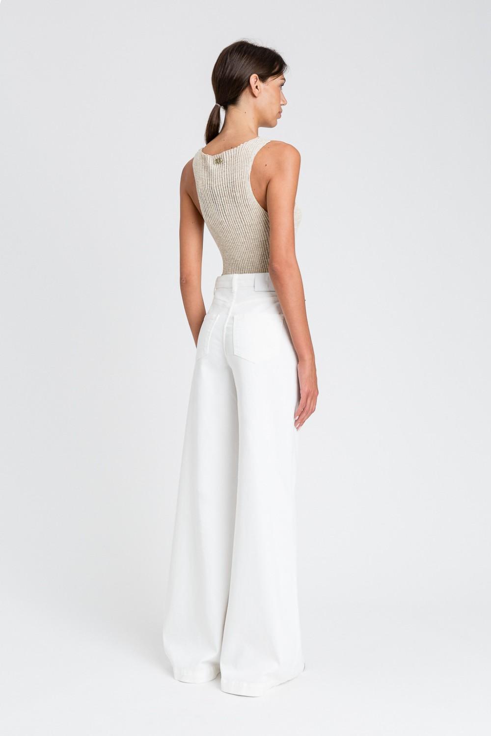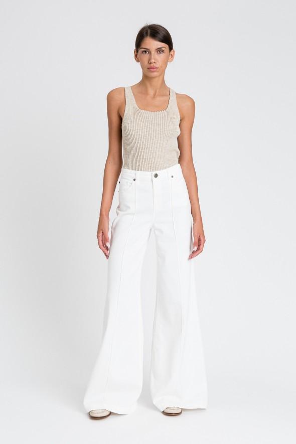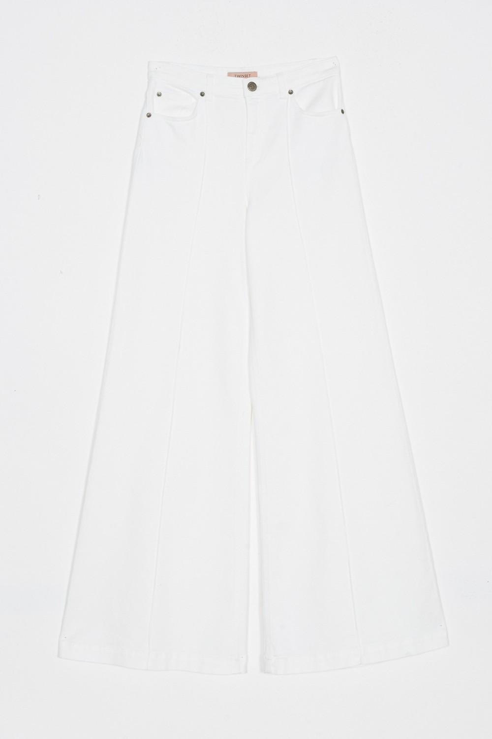 TWINSET cotton jeans with a high waist, button and zip fastening, wide palazzo legs and a vertical durable hem at the front