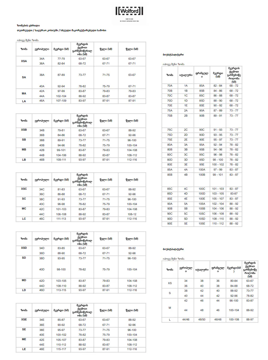 Size chartProduct description:
