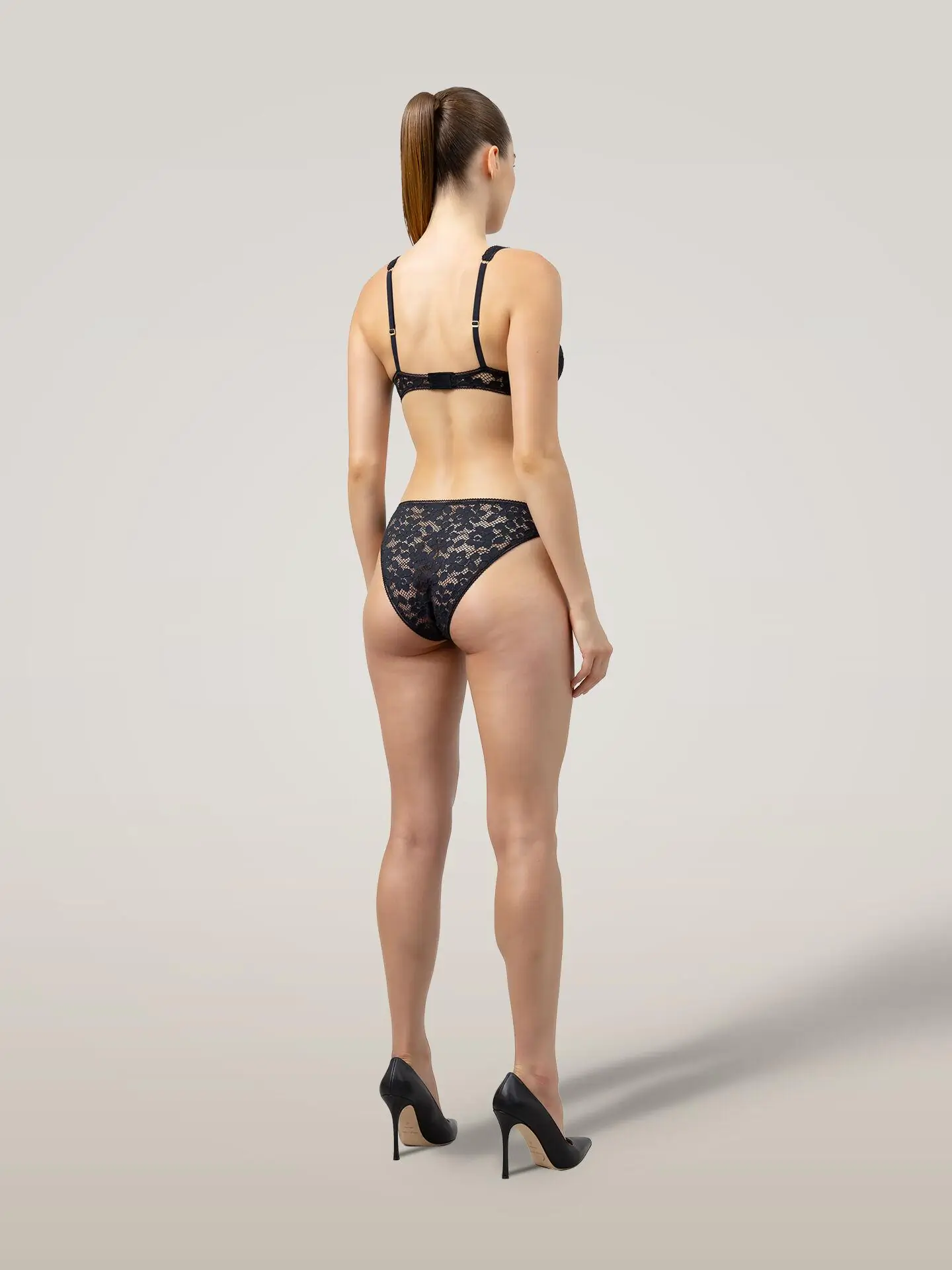 All-over stretch lace bikini / Classic bikini with back coverage / Mid rise